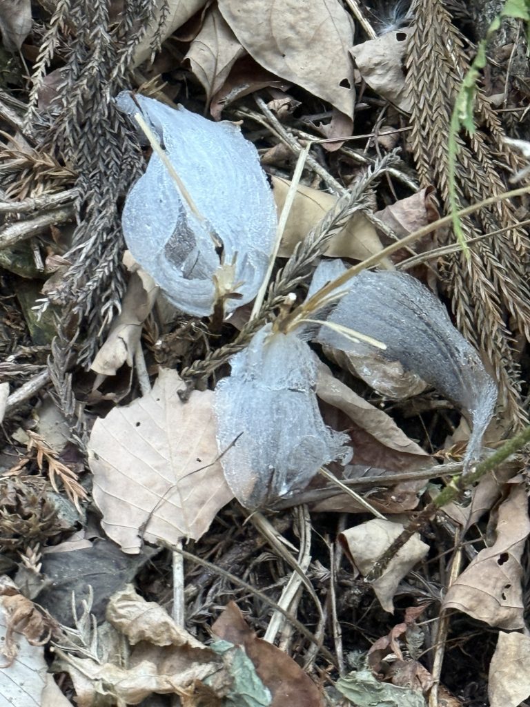 先週末に登った高尾山で、1年降りに、シモバシラを見れました。